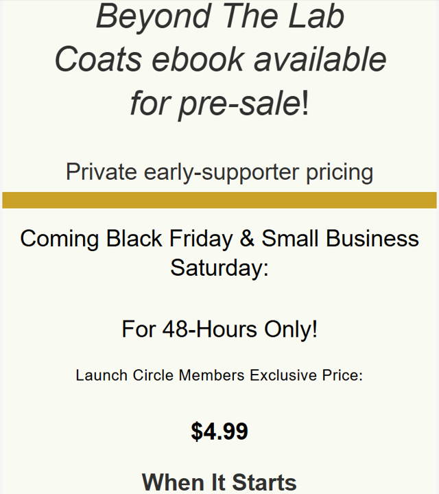 Be part of the journey so you can see how we write our memoir Beyond the Lab Coats and how we are building BALTERRA’s debut supplement line from scratch.